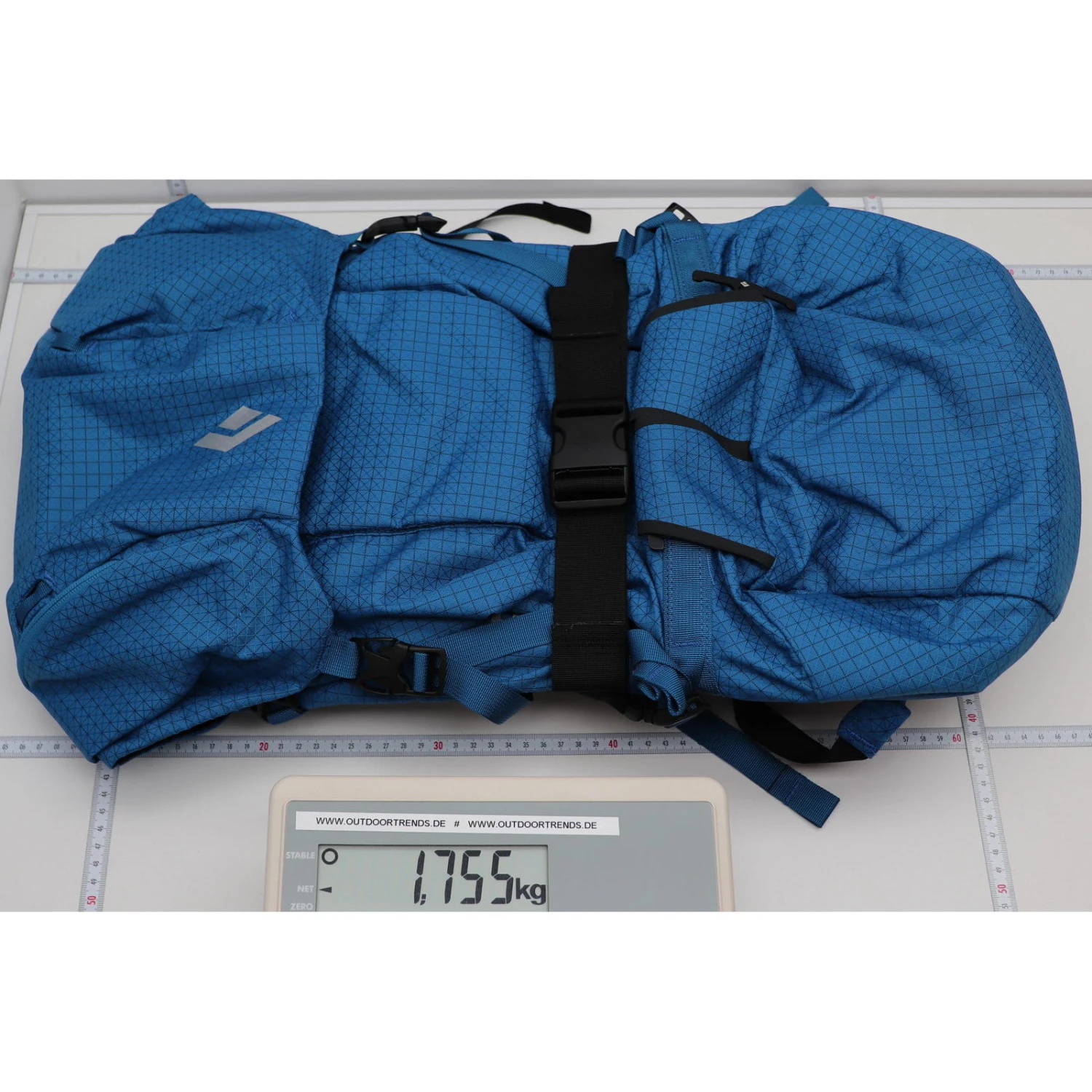| Merkmale | 2-Stufen-Packsack, Brustgurt mit Signalpfeife, Deckelfach mit Reißverschluss außen, Einschubfach im Hauptfach, Einschubfach vorne speziell für Steigeisen oder Skitourenfelle, Eisgerätehalterung, gepolsterter Hüftgurt, großer Seitenreißverschluss für den Zugriff auf das Hauptfach, großes Reißverschlussfach unter dem Deckel innen, Halterung für Trinkblase, höhenverstellbarer Brustgurt, höhenverstellbarer Deckel, Lastkontrollriemen, Materialschlaufen auf dem Deckel, Materialschlaufen auf den Schulterträgern für Brille etc., Pickelhalterung, Reißverschlussfach im Deckelfach außen, Schlauchdurchführung für Trinksystem, Schlüsselhalterung, Seilfixierung unter dem Deckel, seitliche Kompressionsriemen, seitliche Skibefestigung (Skibreite max. 180 mm), Trageschlaufe hinten oben, zwei Materialschlaufen am Hüftgurt |