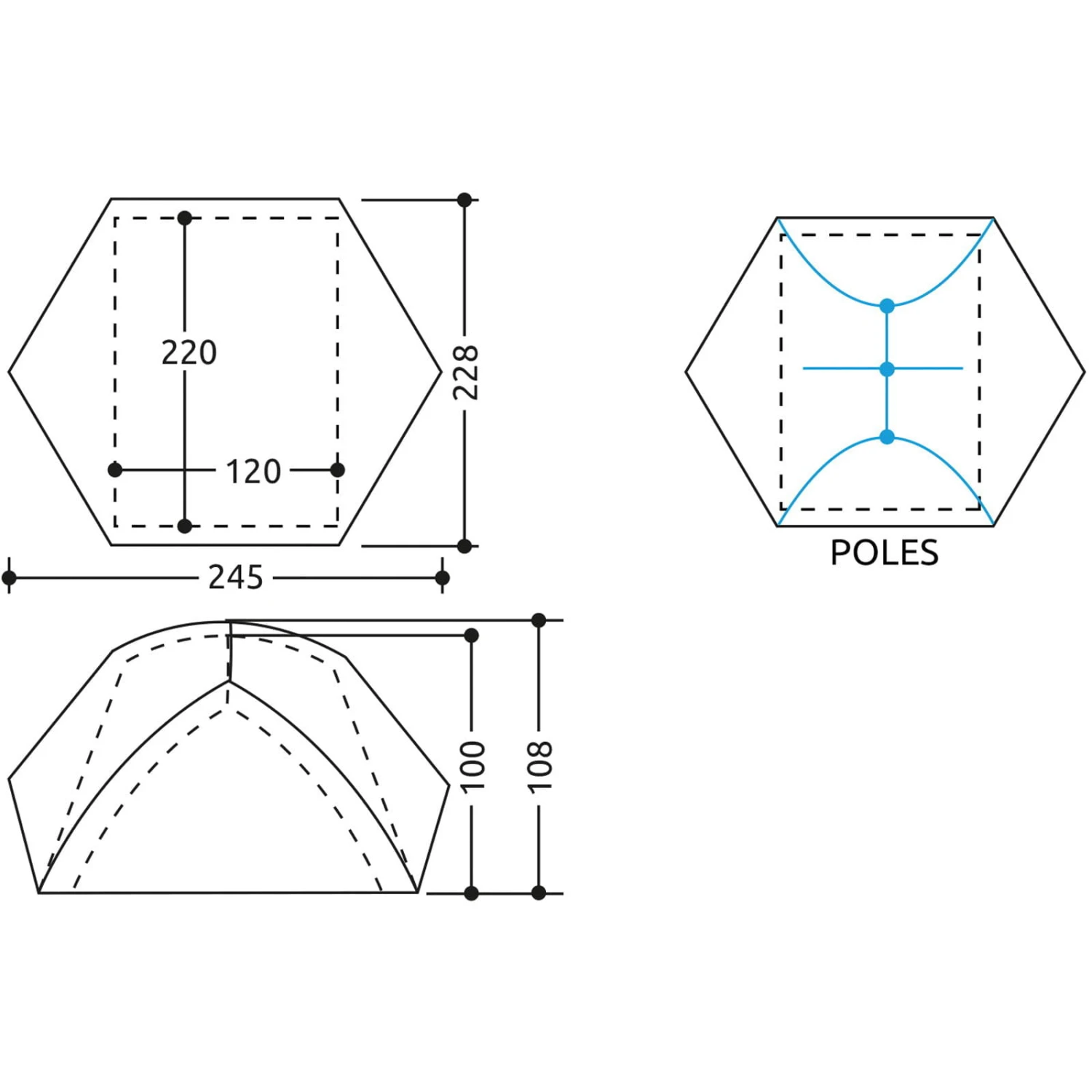 Merkmale: kompaktes und leichtes Zwei-Personen-Zelt mit Doppelwand; selbstragende Struktur mit integriertem Gestänge, ausgestattet mit Schnellclipsystem für eine einfache und schnelle Montage; zwei breite Eingänge mit geräumigem Vorraum auf beiden Seiten für mehr Schutz; Netzwand Innen für maximale Belüftung; zwei Innentaschen zur Aufbewahrung von Gegenständen; leichte, strapazierfährige und wasserdichte Außenwand mit verdeckten Reißverschlüssen, zwei großzügigen Belüftungsöffnungen; faltbare Bodenklappen an allen Seiten der Außenwand; die Außenwand wird mit einstellbaren Riemen mit Metallösen und Velcro®-Klettband am Gestände befestigt; Außenwand mit Zeltspannleinen, die für eine einfache und sichere Spannung sorgen; Befestigungssystem des Zeltbodens mit einstellbarer Schnur für eine einfache Positionierung des Zelts auch auf unebenen Flächen; 15 cm V-Profil Aluminiumheringe; inkl. Packbeutel, Heringe und Spannleinen