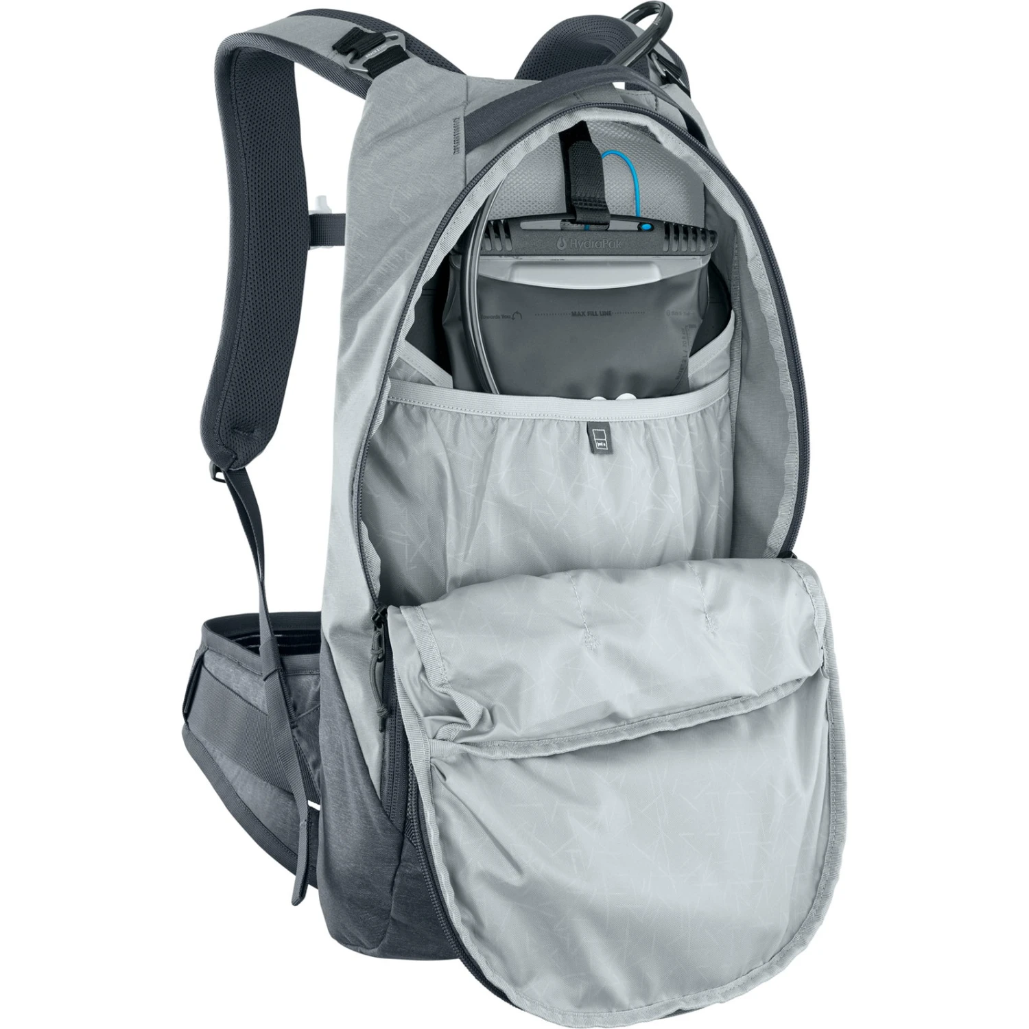 Der Trail Pro 10 von Evoc bietet High-End-Performance in kompaktester Form. Der Protektor-Rucksack ist ideal für ausgiebiges Trailriding oder den Renneinsatz. Die Next-Level-Schutzfunktion (Level 2) des Protektors sorgt mit seiner sportlich-kompakten Passform und kompromisslosem Halt für höchste Performance und maximalen Tragekomfort. Ausgestattet ist der Bike-Rucksack unter anderem mit extra breiten Hüftflügeln und AIRO FLEX Hüftgurt für optimalen Sitz. Die große Reißverschluss-Öffnung ermöglicht einen leichten Zugriff auf das Hauptfach und das Werkzeugfach lässt sich auch mit Handschuhen einhändig öffnen und schließen. Darüber hinaus gibt es weitere Taschen und Fächer für Wertsachen oder zusätzliche Ausrüstung, multifunktionale Befestigungsschlaufen sowie Platz für Trinksysteme mit bis zu 3 Litern Volumen.