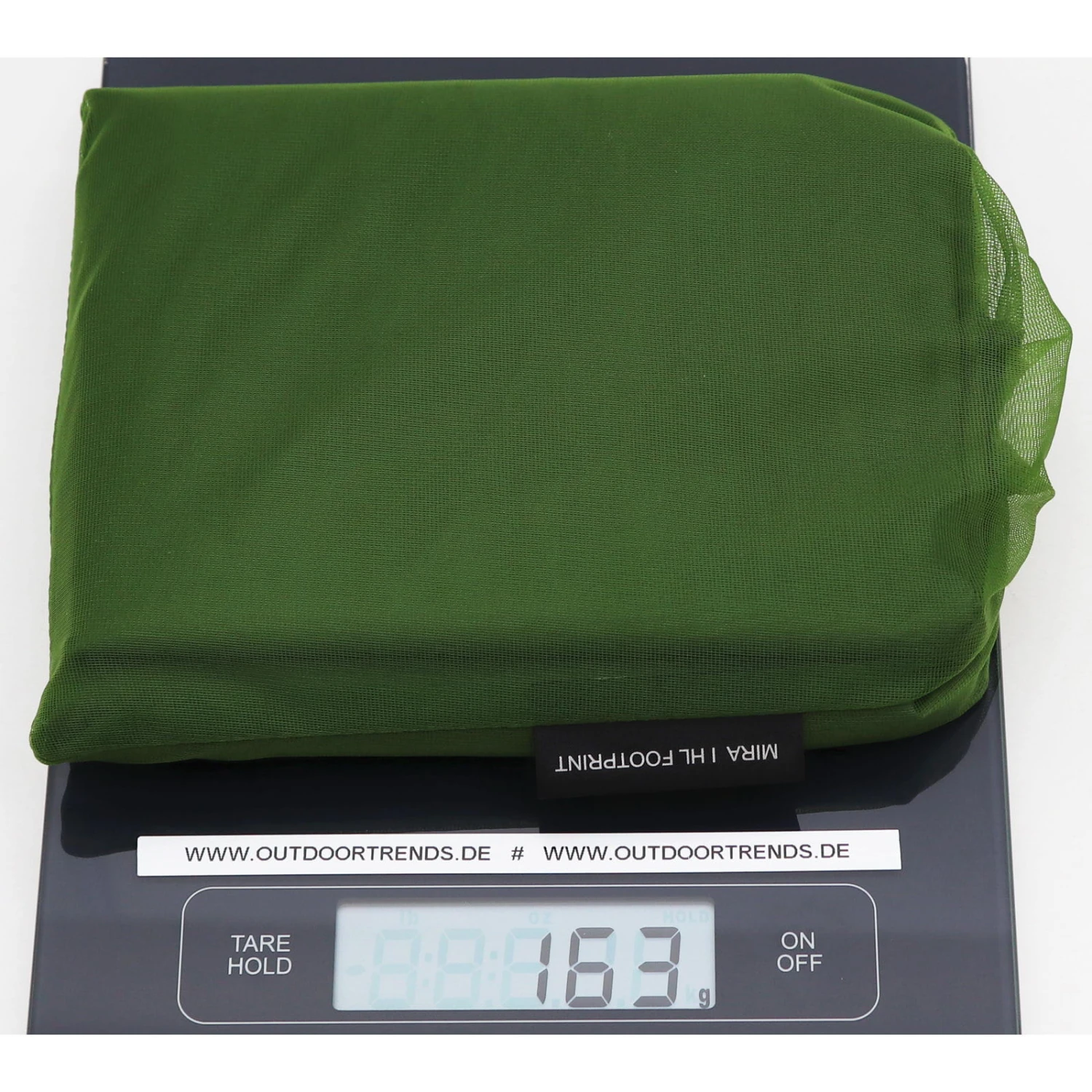 Der Footprint für das Mira I HL von EXPED schützt den Zeltboden vor Abrieb, Schmutz, Durchnässung. Er hat dieselbe Form wie der Zeltgrundriss, ist aber etwas kleiner geschnitten, damit kein Regen zwischen Zeltterboden und Footprint gelangen kann. Diese praktische Unterlage wird mit elastischen Bändern ganz einfach direkt am Zelt und den Heringen befestigt. In der Apsis schützt der Footprint wie ein Teppich und sorgt so für weniger Schmutz im Zelt. Zusätzlich wird auch die Bildung von Kondensfeuchtigkeit reduziert. Es ist möglich Footprint und Außenzelt als Minimum für Leichtgewichtstouren zu kombinieren. Ein Footprint kann auch als Tarp gegen Regen, Wind und Sonne aufgespannt werden.