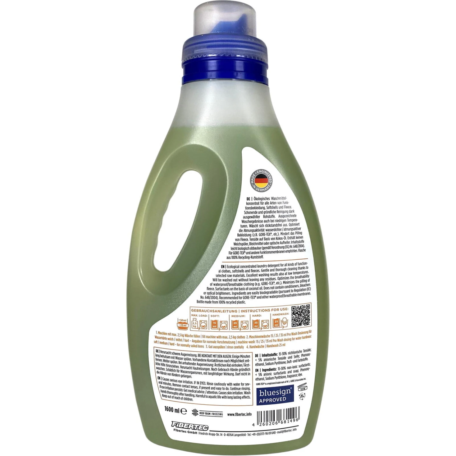 Fibertec Pro Wash Eco 1,6 Liter ist ein konzentriertes Spezialwaschmittel auf Basis nachwachsender Rohstoffe – speziell entwickelt für die effektive Reinigung wasserdicht/atmungsaktiver Bekleidung wie z.B. GORE-TEX, Fleeceartikel, Softshells und anderer Funktionstextilien.