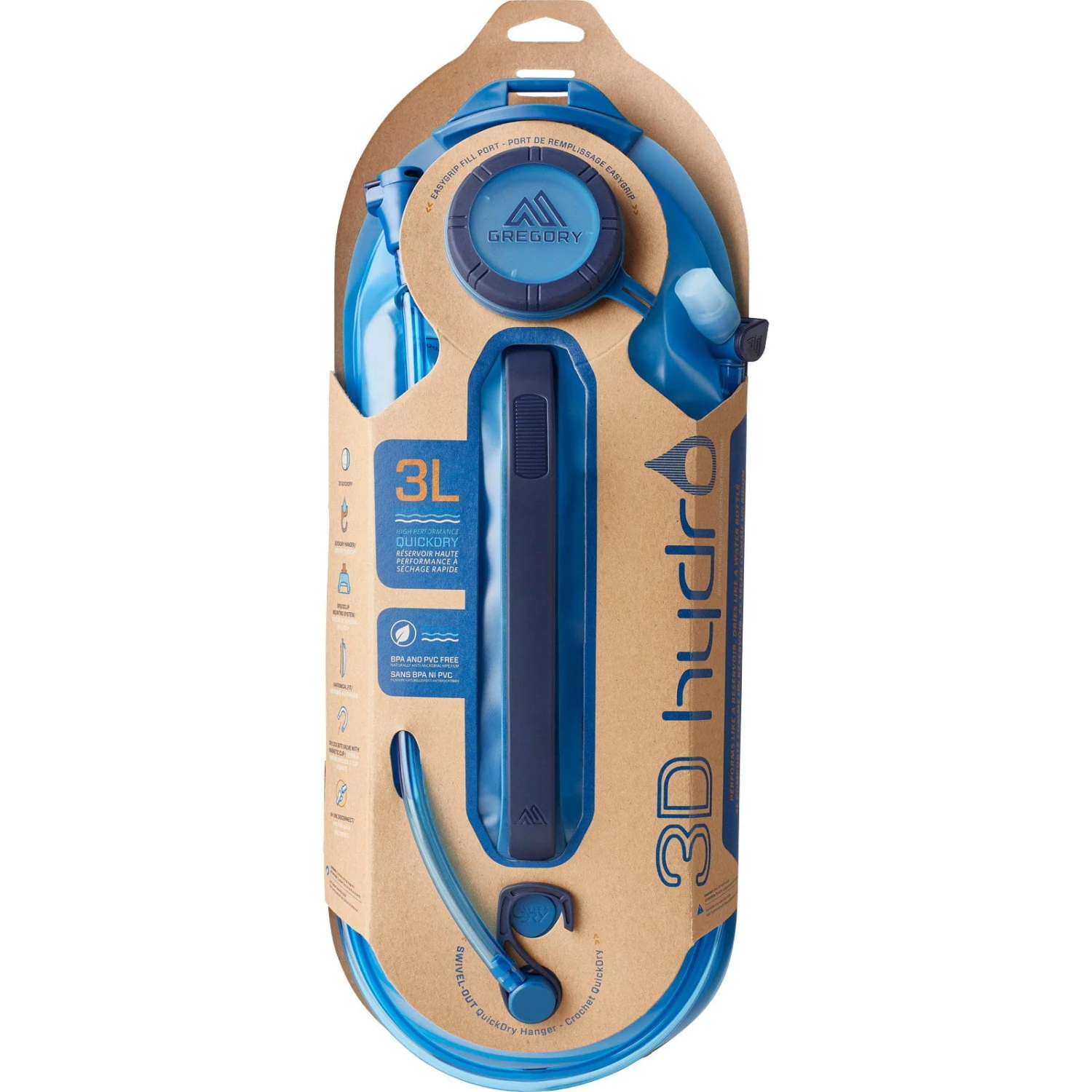 Das 3D Hydro 3L Reservoir von Gregory bietet durch sein patentiertes, dreidimensionales Design eine Menge toller Features. Die weiche 3D-Form sorgt dafür, dass das Wasser flach am Rücken anliegt, um optimale Stabilität zu gewährleisten. Gleichzeitig wird beim freien Aufhängen und dank des integrierten QuickDry-Aufhängers das Trocknen maßgeblich beschleunigt und das Bakterienwachstum vermieden. Der gebogene, vorgeformte Griff und die geformte Basisplatte erleichtern das Befüllen, Einsetzen und Entfernen aus dem Rucksack. Das 3D-Hydro-Reservoir ist für SpeedClip-Halterung von Gregory konzipiert und ermöglicht die einhändige Betätigung des Befestigungssystems. Die integrierte Schlauch-Schnelltrennung sorgt für einfaches und müheloses Nachfüllen, ohne dass der Schlauch vom Schultergurt entfernt werden muss. Das weiche Ausguss-Beißventil mit Magnetclip ermöglicht eine sichere, auslauffreie Aufbewahrung auf der Hin- und Rückreise zur Wanderung. Die EasyGrip-Füllöffnung mit integrierter Schlauchführung rundet die innovativen Features perfekt ab.