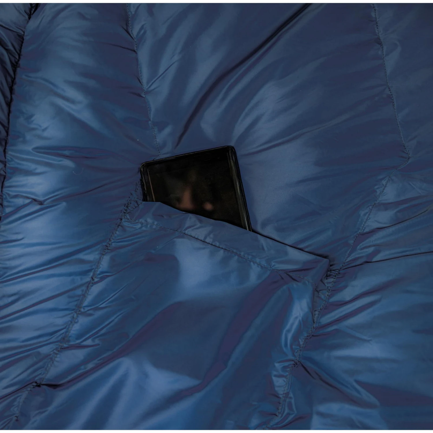 Der Biopod DownWool Ice 185 und 200 von Grüezi Bag für Herren ist ein hochwertiger Mumienschlafsack mit innovativer DownWool Füllung für den Einsatz in kühlen Winternächten. Ein guter Schlaf ist wichtig, damit man auch am nächsten Tag wieder fit ist. Die innovative DownWool-Füllung, eine Mischung aus Daune und Wolle, kann einem dabei helfen. Die Daune sorgt für hervorragende Isolation bei leichtem Gewicht, die Wolle reguliert den Feuchtigkeitshaushalt im Schlafsack und sorgt für ein trockenes Klima. In einem trockenen warmen Klima kann sich der Körper besser erholen. Auf langen Touren um den Gefrierpunkt ist das wichtig. Der Clou ist der nach unten hin runde Reißverschlussverlauf, durch den man, wenn es mal zu warm wird, bequem seine Füße auf der Oberseite des Schlafsacks ablegen kann. Sehr praktisch ist auch das Kopfkisseneinschubfach, hier einfach eine Fleecejacke einstecken und schon hat man ein unverrutschbares Kopfkissen. Der Biopod DownWool Ice hält warm und trocken für einen guten Schlaf bei Temperaturen um den Gefrierpunkt.