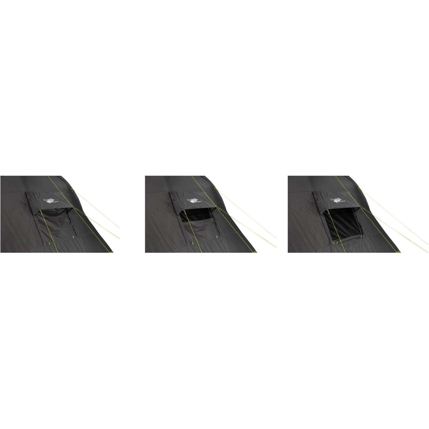 Das Garda 4.0 von High Peak ist ein vielseitiges und geräumiges Familien-Tunnelzelt mit eingenähtem Boden, der Feuchtigkeit, Schmutz und Krabbeltiere fernhält. Das Tunnelzelt bietet ausreichend Platz für bis zu vier Personen und verfügt über einen großzügigen Innenraum. Das große Vordach mit Klarsichtfolienfenster spendet Schatten und schützt vor Wind und Wetter. Je nach Wetterlage lässt sich die Verandafront komplett öffnen und vergrößert den Wohnbereich. Der Wohnraum mit einer Stehhöhe von 2 m bietet ausreichend Platz für die Campingausrüstung und der wettergeschützte Eingang verfügt über ein großes, von innen variabel zu bedienendes Moskitofenster und dient der Dauerbelüftung. Der Seiteneingang mit Moskitotür ermöglicht eine zusätzliche Belüftung des Wohnbereichs, zwei Klarsichtfolienfenster bringen Licht in den Wohnraum und Gardinen schützen vor neugierigen Blicken. Die Bodenwanne an der Front kann mittels Reißverschluss heruntergeklappt werden und verhindert Stolperfallen. Das Dach hat eine Aluminium-Beschichtung und ist Hitze reflektierend. Ein weiterer Vorteil des Garda 4.0 ist sein innovatives, individuell regulierbares Belüftungssystem. Die High Peak 3-Stufen Dual Flow Ventilation im Schlafbereich passt sich jeder Wettersituation optimal an und kann je nach Klima bequem von innen variabel bedient werden. Zusätzlich verfügt das Zelt über extra starke Reißverschlüsse mit Reißverschlussabdeckungen und Nähte, die mit Nahtband wasserdicht versiegelt sind, um die Reißfestigkeit der Nähte zu erhöhen. Das abgedunkelte Innenzelt mit Vario Vent Control System verfügt über zwei Moskitonetz-Eingänge, die lästige Plagegeister fernhalten, ist geräumig und gut organisiert. Mit einer Reißverschluss-Trennwand kann das Innenzelt in eine große Kabine oder zwei getrennte Schlafbereiche unterteilt werden. Es verfügt über vier praktische Organizer und vier Innenzelttaschen, in denen persönliche Gegenstände sicher verstaut werden können. Zwei Lampenhalter für Campingleuchten oder Taschenlampen runden den Komfort ab. Das Garda 4.0 ist ideal für den Campingurlaub und wird mit einem robusten Packsack mit Kompressionsgurten geliefert, der den Transport erleichtert und eine platzsparende Aufbewahrung ermöglicht.
