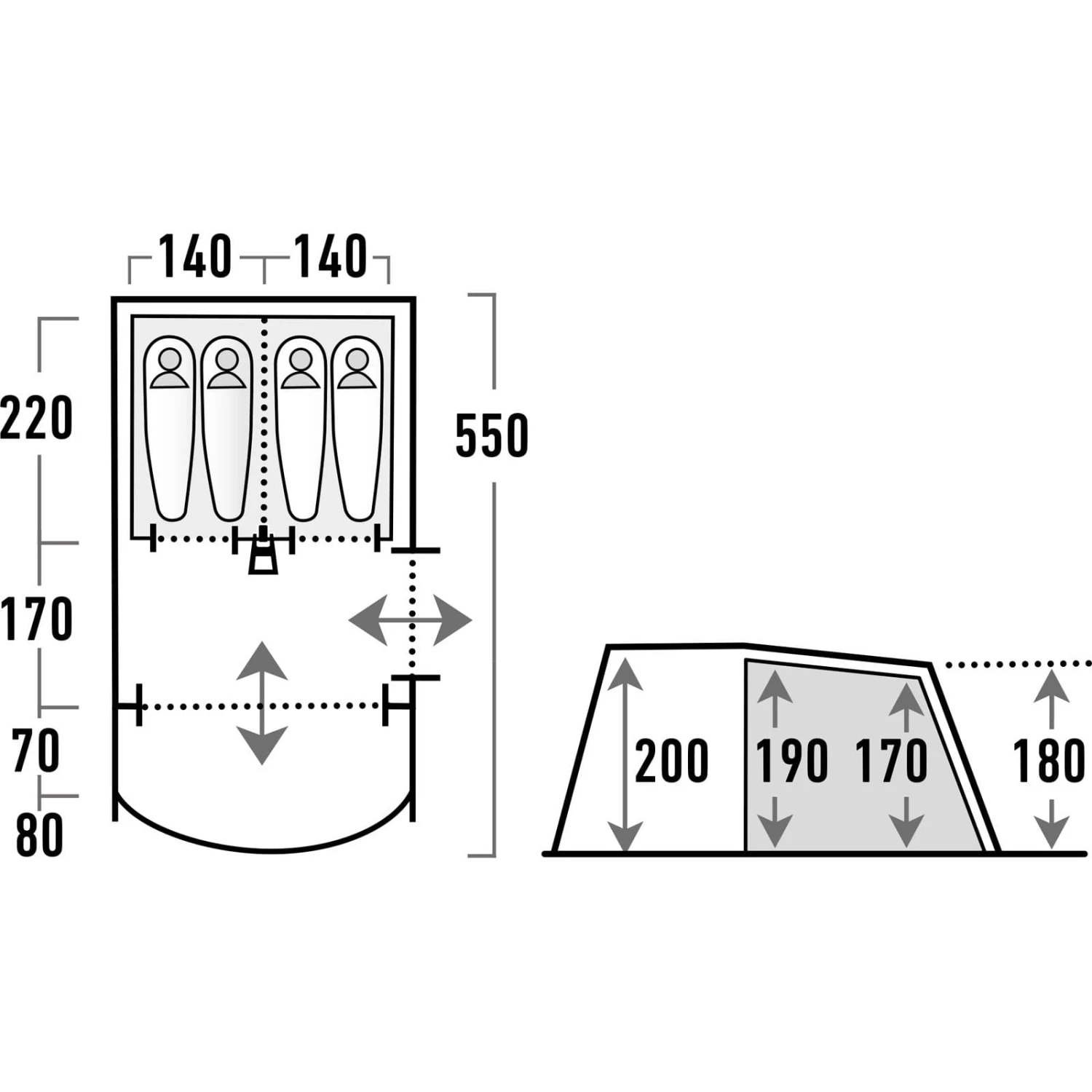 | Maße Außenzelt ca. | 550 x 300 x 200 cm |