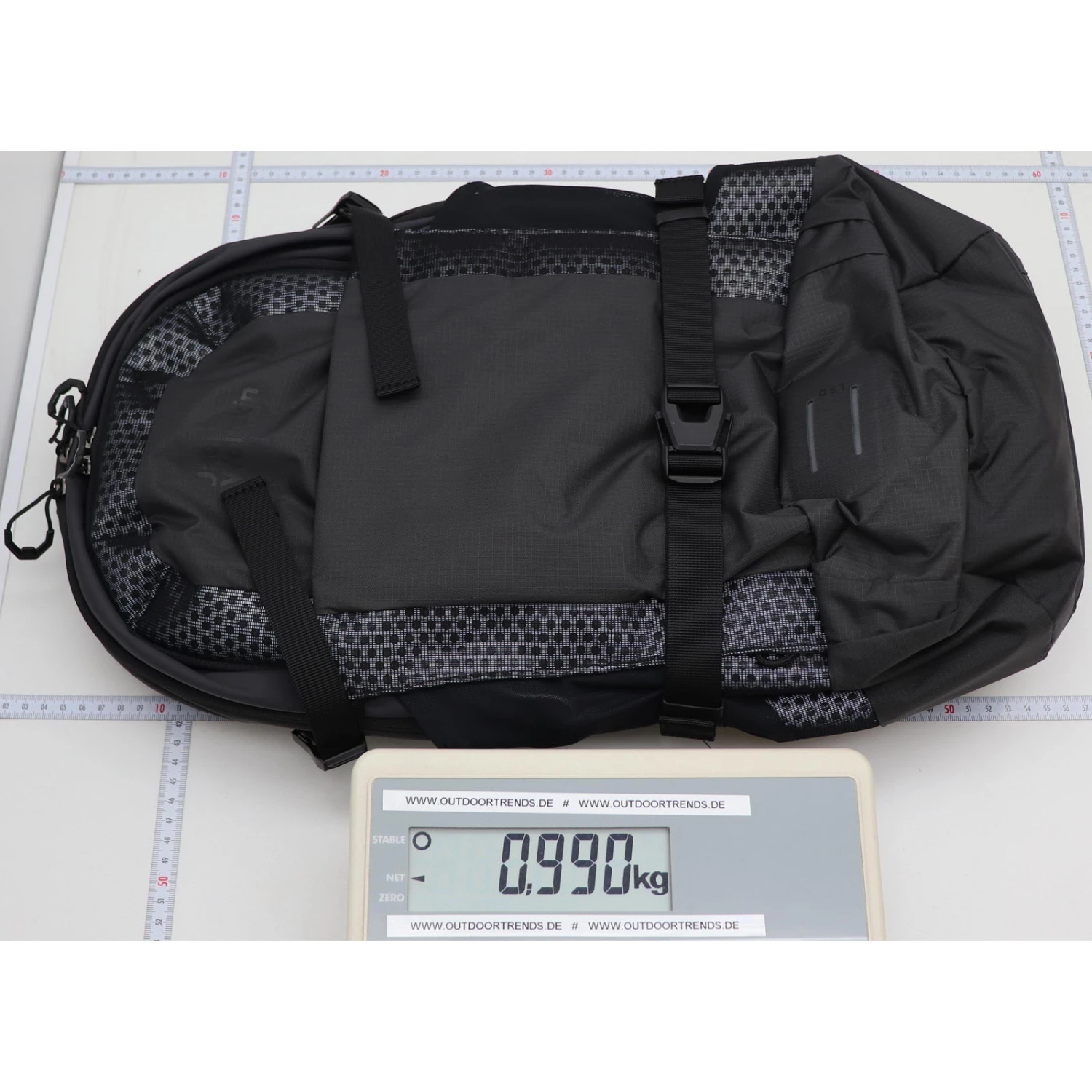 | Merkmale | Blinklichthalterung, Brustgurt mit Signalpfeife, Einschubfach im Hauptfach, Einschubfach vorne in der Weite regulierbar, gepolsterter Hüftgurt, Halterung für Trinkblase, höhenverstellbarer Brustgurt, integrierte Regenhülle, Materialschlaufen auf den Schulterträgern für Brille etc., reflektierende Elemente, Schlauchdurchführung für Trinksystem, Schlüsselclip, seitliche Kompressionsriemen, Trageschlaufe hinten oben, verstaubare Helmhalterung, Werkzeugfach vorne mit Reißverschluss und durchdachter Fächeraufteilung, zwei elastische Seitentaschen, zwei Reißverschlusstaschen an den Hüftflügeln (aus Mesh) |