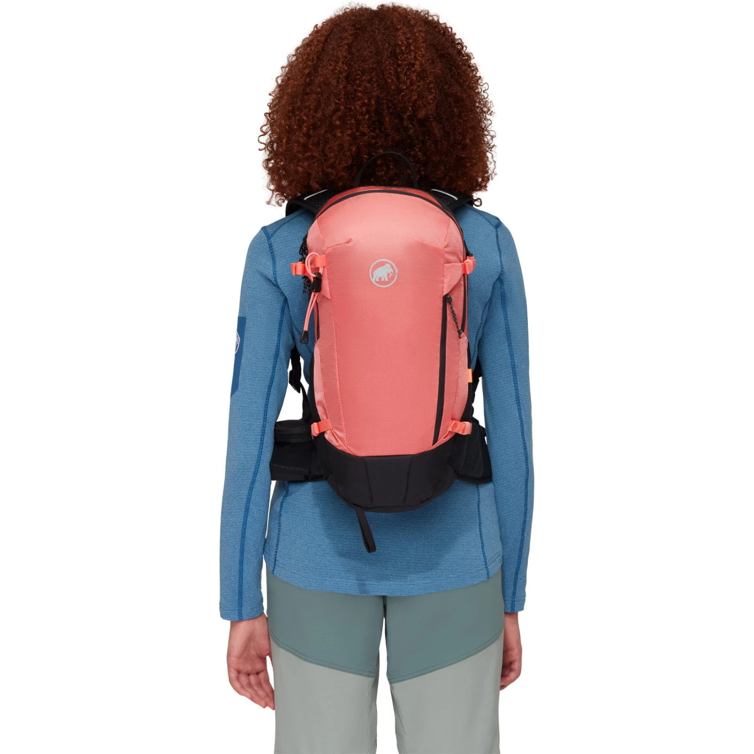 Der Lithium 20 Women von Mammut für Damen ist ein leichter und kompakter Wanderrucksack mit top Ausstattung, er ist optimal für Tagestouren. Der Lithium 20 Women ist mehrheitlich aus recycelten Materialien hergestellt und die dauerhaft wasserabweisende Imprägnierung ist PFC-frei. Dank der besonders leichten und atmungsaktiven Schulterpolsterungen besitzt der Tagesrucksack einen hohen Tragekomfort und die Luftkanäle im 3D EVA-Schaum sorgen am Rücken für eine gute Kühlung. Das Tragesystem und die Schulterträger sind speziell auf die weibliche Anatomie zugeschnitten. Der Lithium 20 Women besitzt eine umfangreiche Ausstattung wie z.B. eine Regenhülle, eine Stockhalterung oder einen gepolsterten und abnehmbaren Hüftgurt mit einer ausklappbaren Tasche für das Smartphone.