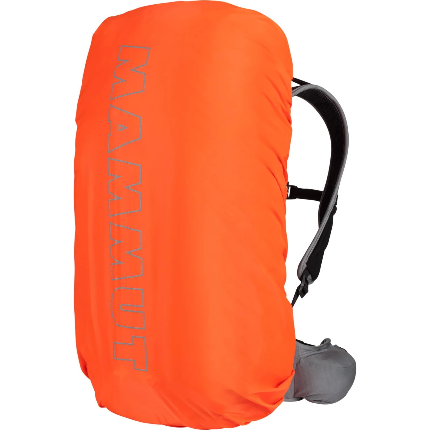 Das Raincover von Mammut sorgt für trockene Verhältnisse am und im Rucksack, wenn es draußen einmal nass werden sollte. Die Regenhülle ist aus einem Stück gefertigt und durch den reflektierenden Logo-Print ist man gut sichtbar. Zusätzlich ist das Raincover in der Mitte mit einer Fixiermöglichkeit ausgestattet und es ist in einer integrierten Tasche schnell und klein verpackbar.