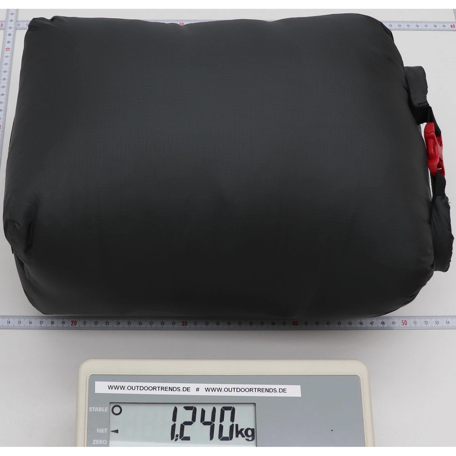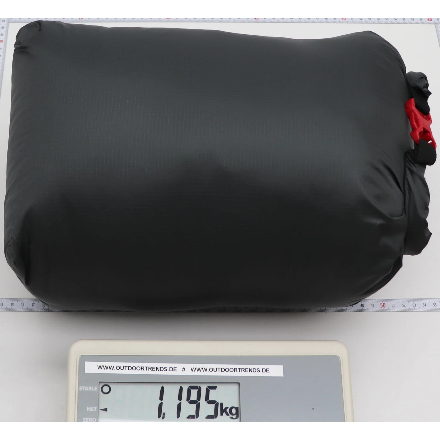 | Merkmale | 140 cm langer Reißverschluss mit Gemini-Kammer über die gesamte Länge, anatomisch geschnittenes Fußteil mit sechs Kammern für besten Schlafkomfort, Aufbewahrungsbeutel mit Reißverschluss, aufwändig geschnittene Kapuze mit fünf separaten Kammern schützt den Kopf vor der Kälte, inklusive Packsack mit Rollverschluss, integrierter Wärmekragen mit Lode Lock Verschluss |