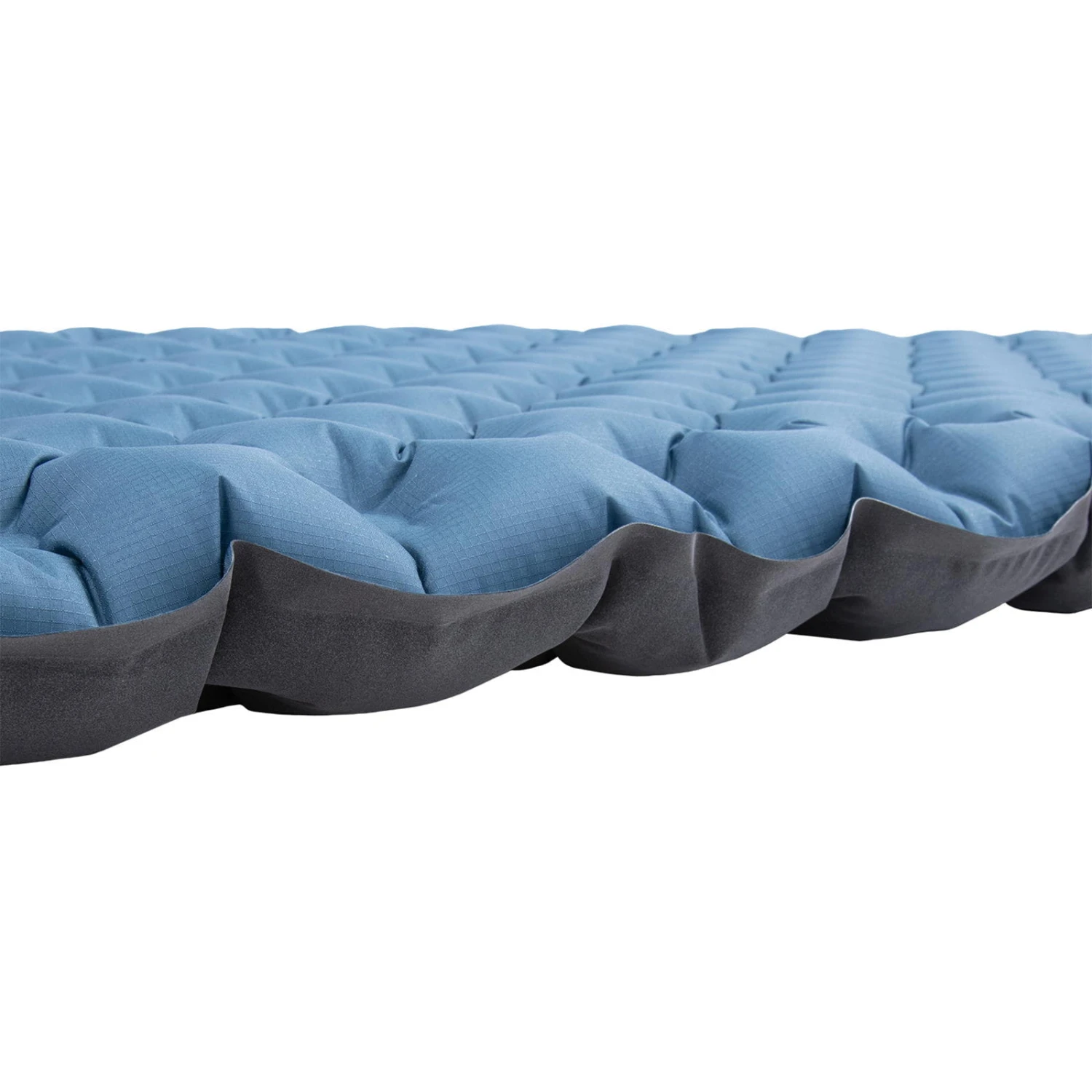 Die Schlafmatte AirTec Comfort von Nomad ist eine isolierende Luftmatratze mit extrem niedrigem Gewicht und kleinem Packvolumen. Das Design dieser Ausführung verhindert kalte Stellen und bietet in Verbindung mit dem einzigartigen Heatlock-System eine bessere Isolierung als die reguläre AirTec-Matte. Die Unterseite der PFC-freien Matte besteht aus extrastarkem Material mit Antirutsch-Funktion. Die beiden Ventile sind mit Einwegfunktion versehen. Zum Lieferumfang gehört ein Packsack, ein Reparaturset und ein Pumpsack.
