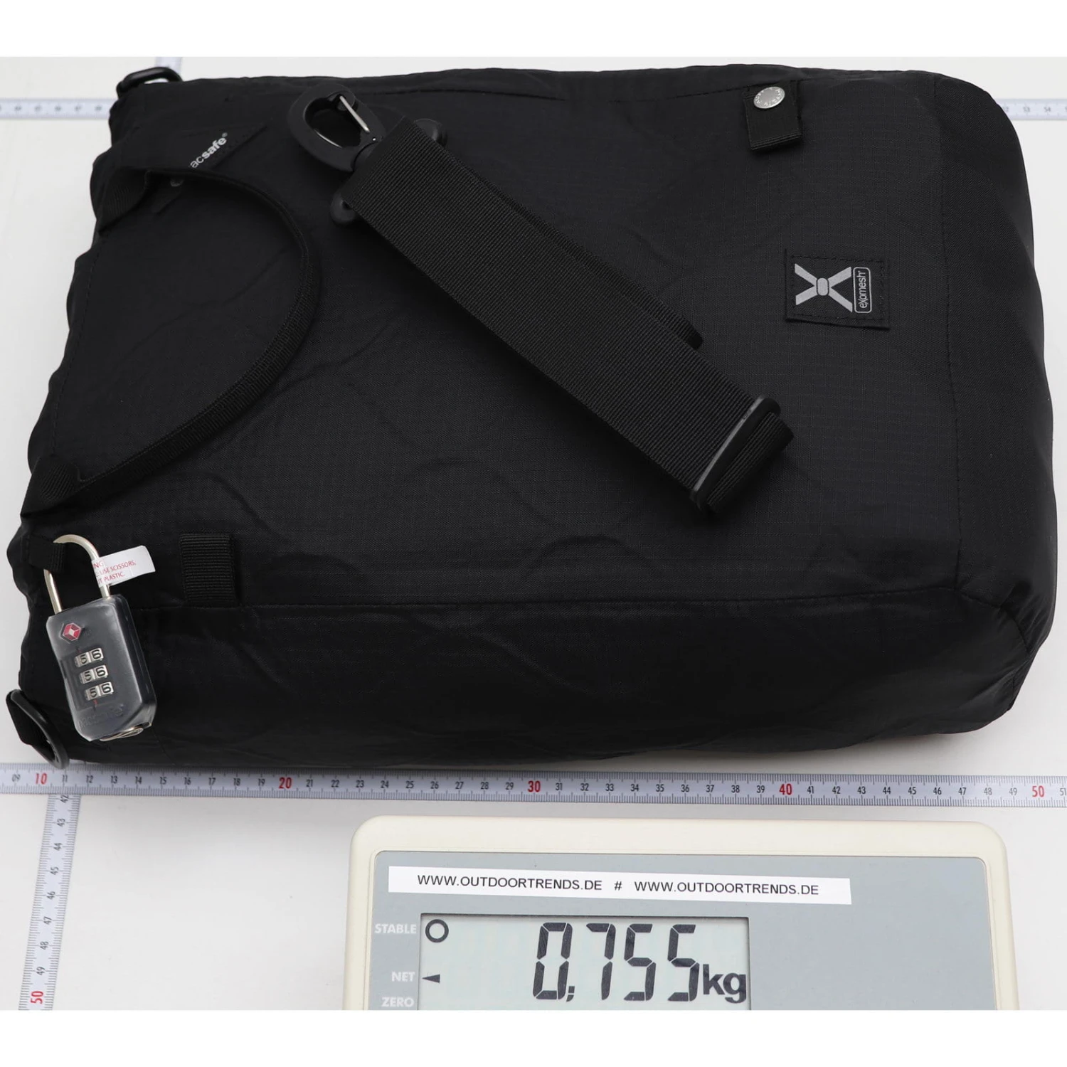 | Merkmale | Abnehmbarer Schultertragegurt, abschließbar und an festen Gegenständen fixierbar, eXomesh® Schlitzschutz, helles Innenfutter für einen besseren Überblick über den Inhalt, inklusive integriertem Edelstahlkabel, inklusive TSA-zertifizierten ProSafe 1000 Schloss, Tragegriff |