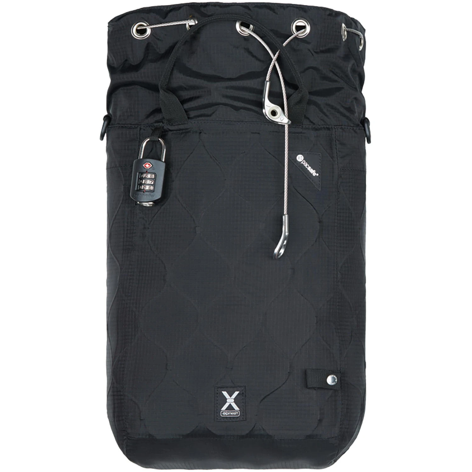 Der Travelsafe X15 von pacsafe ist ein flexibler und tragbarer Safe für Wertsachen, der schnell und unkompliziert an einem festen Gegenstand oder Objekt gesichert werden kann. Der tragbare 15-Liter-Safe verfügt über die 360° wire eXomesh-Technologie und kann mit dem integrierten hochfesten Edelstahlkabel zugezogen und mit dem mitgelieferten TSA-zertifizierten-Zahlenschloss versperrt werden. Das integrierte eXomesh erschwert Taschendieben den Zugriff auf den Inhalt. Das geräumige Hauptfach ist mit EVA Schaumstoff und weichem, hellen Polyester Innenfutter ausgestattet und bietet Platz für Laptops bis 16 Zoll. Ein praktischer Tragegriff und ein abnehmbarer Schultergurt runden den Travelsafe X15 ab.