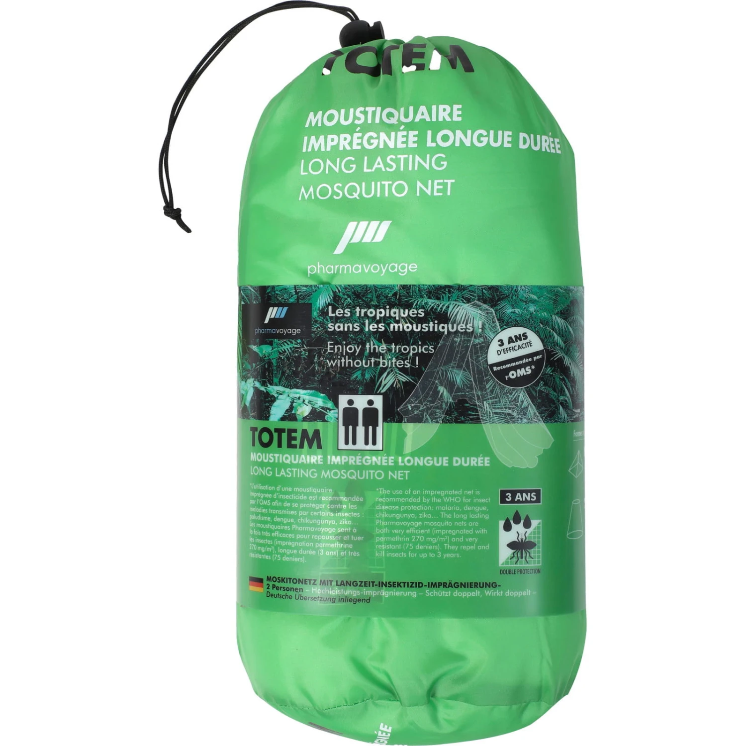 Das imprägnierte Moskitonetz Totem von Pharmavoyage passt problemlos in jedes Reisegepäck und bietet zwei Personen Schutz vor Mücken und Zecken. Besonders in insektenreichen Regionen, wie z.B. in der Nähe von Seen und anderen Gewässern, erweist sich ein Moskitonetz als wahrer Segen.