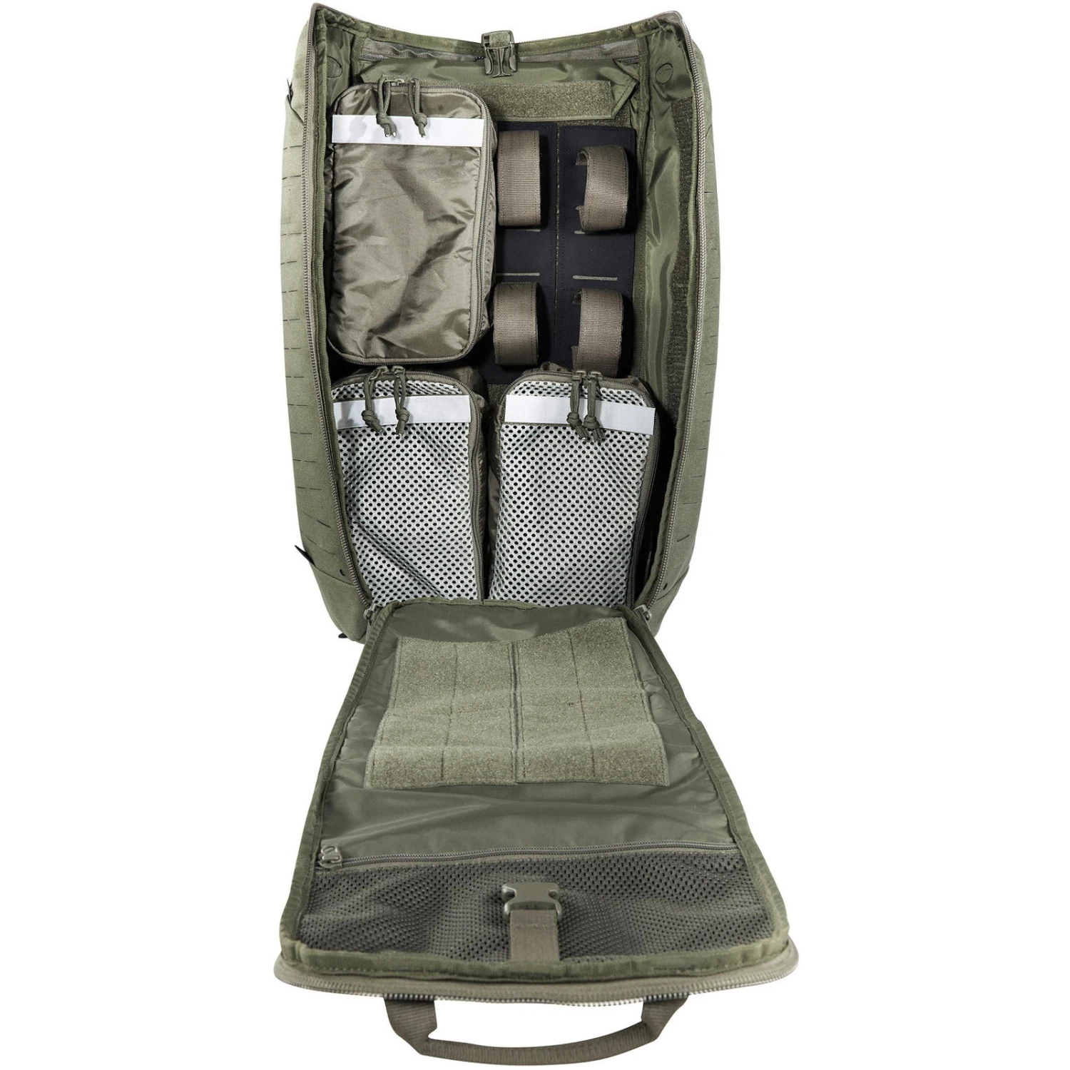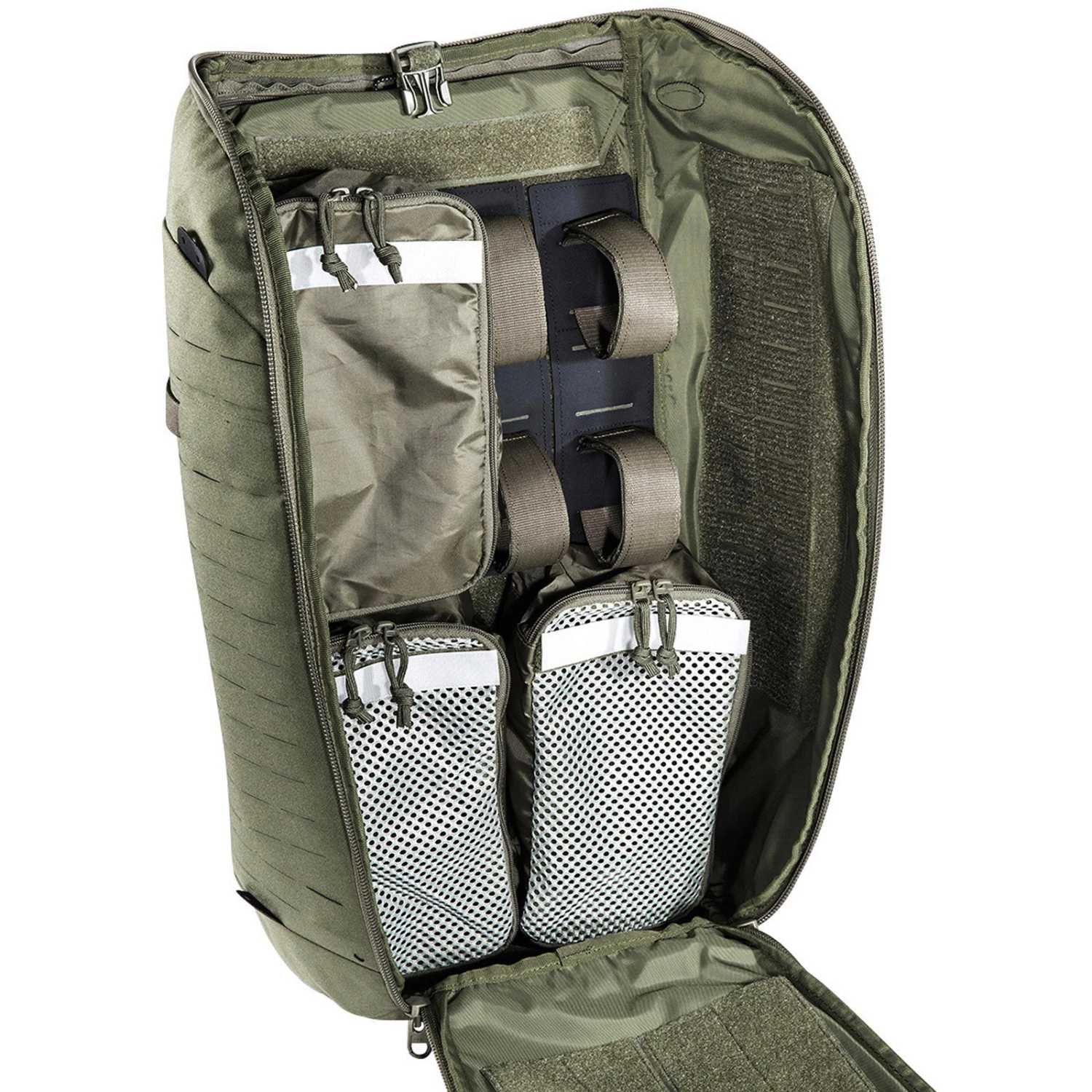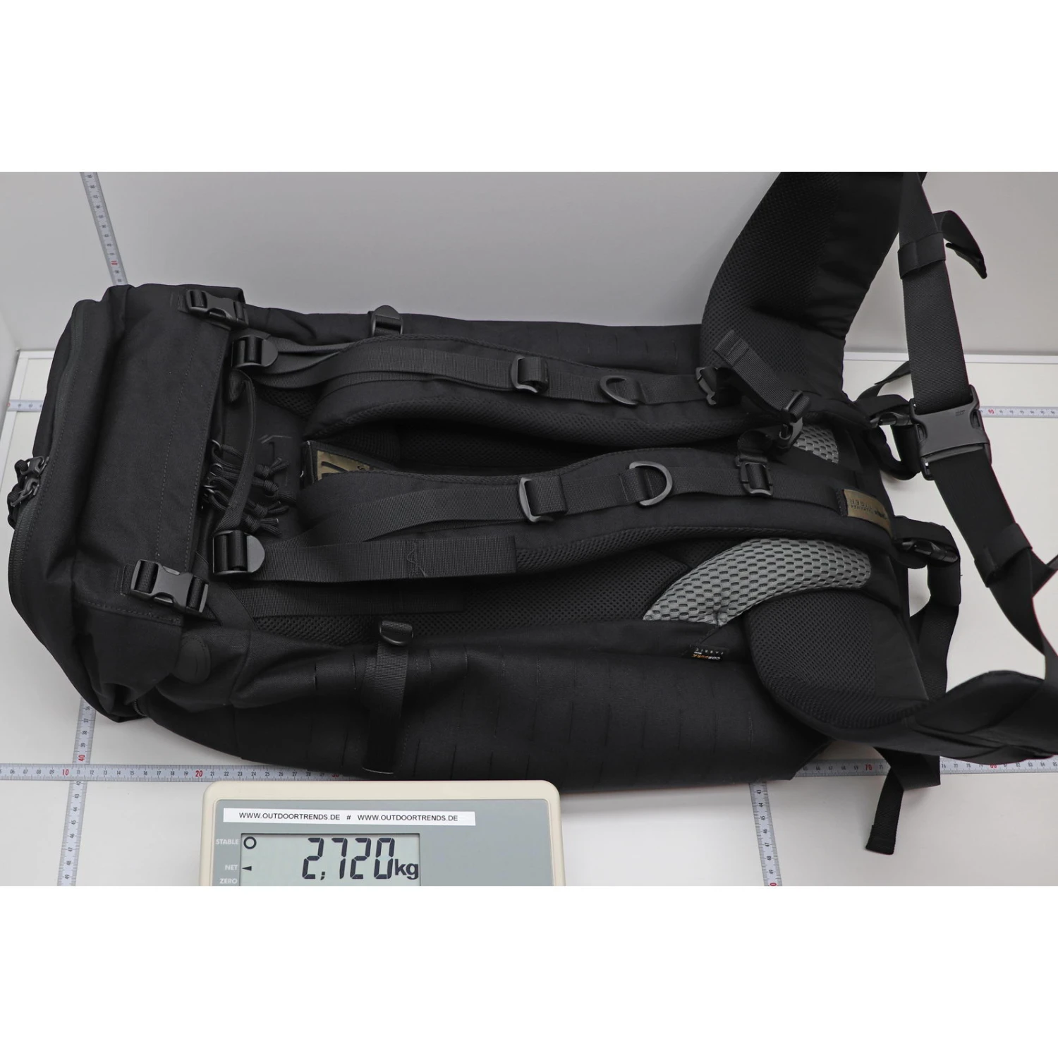 | Merkmale | abnehmbare Front-Falttasche, abnehmbarer Hüftgurt, separat als Warrior Belt verwendbar, Antennendurchlässe am Hauptfach, Deckelfach, Hauptfach mit abschließbarem Reißverschluss, höhenverstellbarer, abnehmbarer Deckel, inkl. 3 x Klettzubehörtaschen, längenverstellbare Schultergurte, MOLLE-Klett im Innenbereich für modulare Erweiterungen, MOLLE-System in Lasercut-Ausführung, Seitenkompression teilweise innenliegend, V2 Plus-Tragesystem |