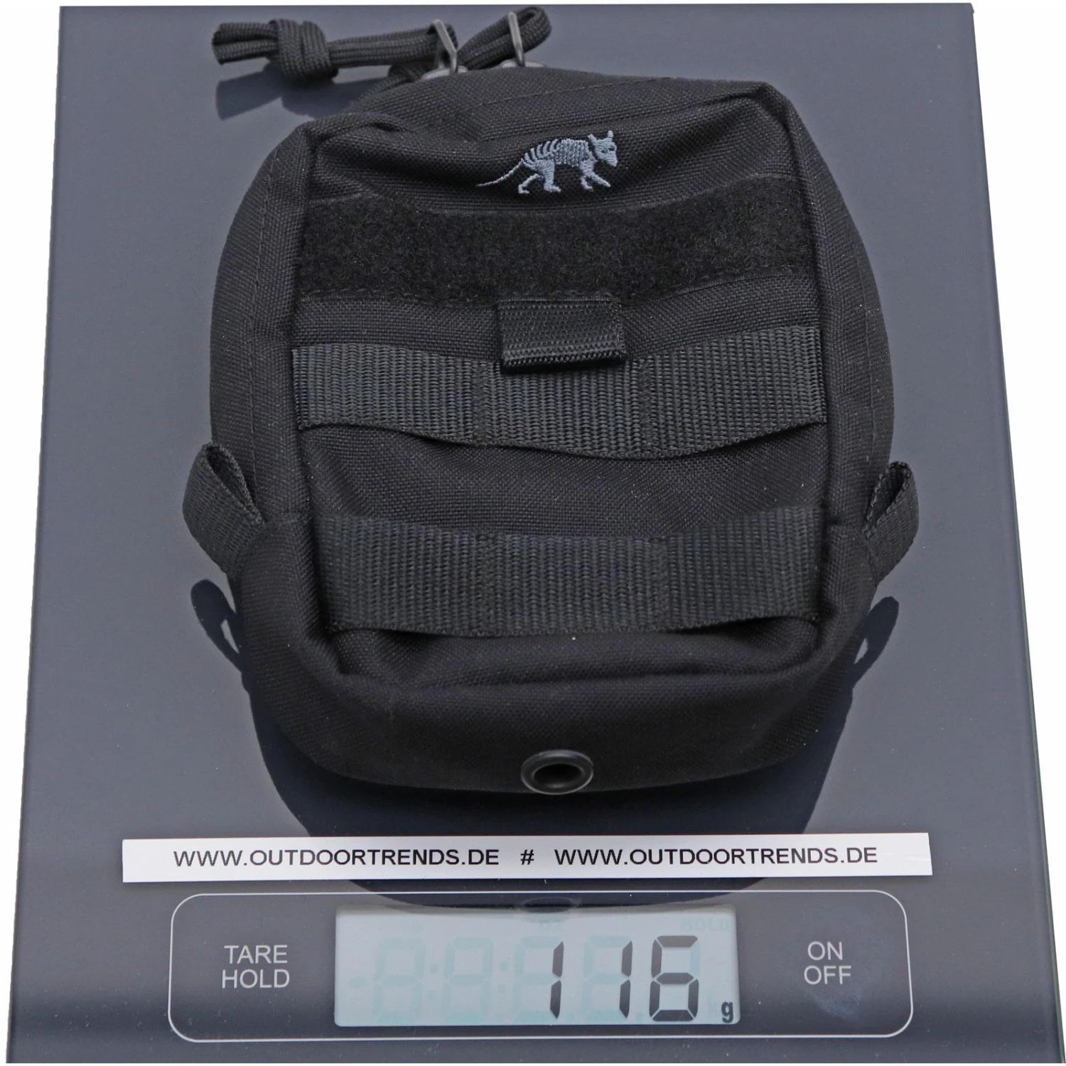 | Merkmale | benötigt zwei MOLLE-Schlaufen, Klarsichtfach für Namensschild, MOLLE-Druckknopf-System, weit zu öffnender Reißverschluss |
