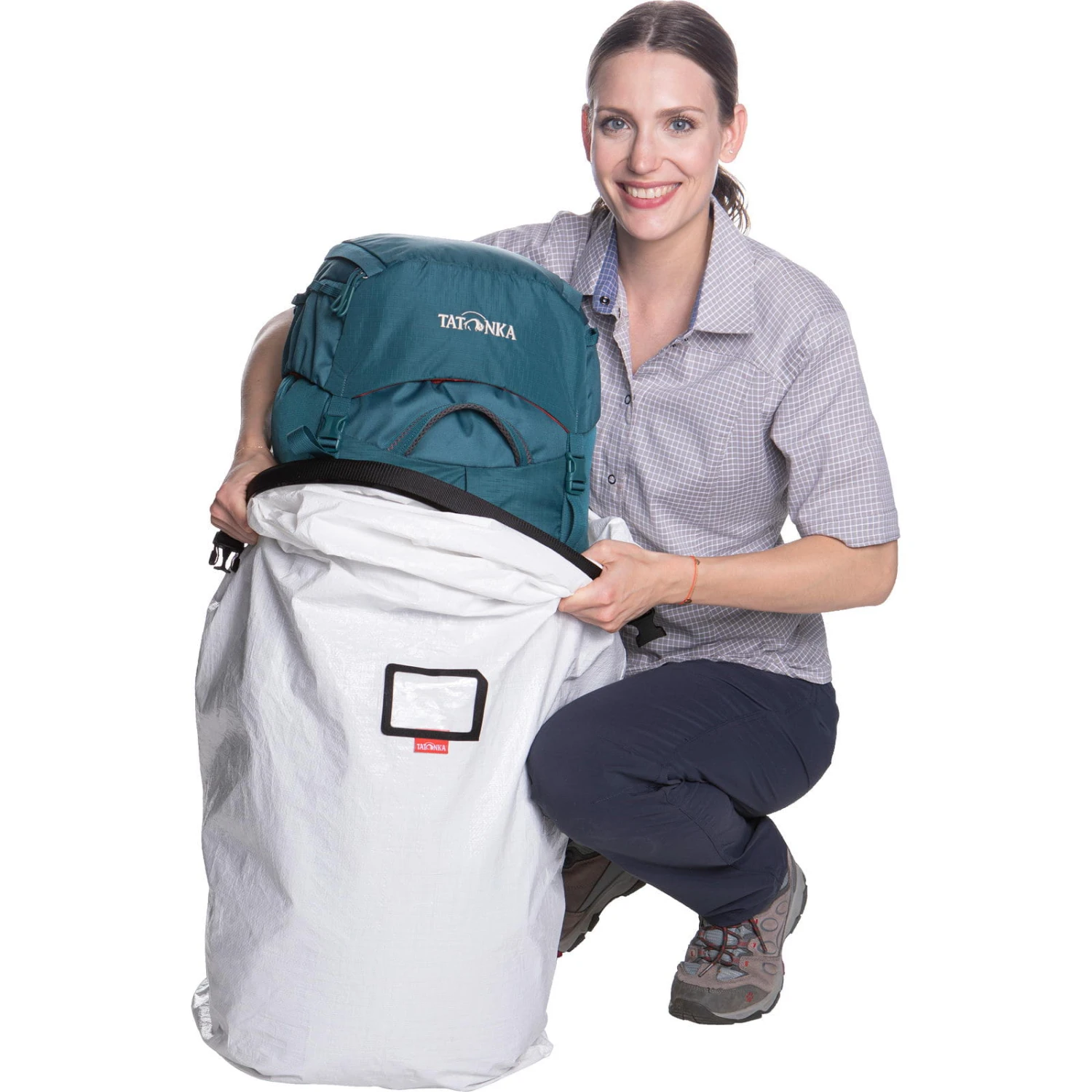 Das Pack Cover Universal von Tatonka schützt den Trekkingrucksack vor Verschmutzungen und sein Tragesystem beim Flugzeug-Transport.