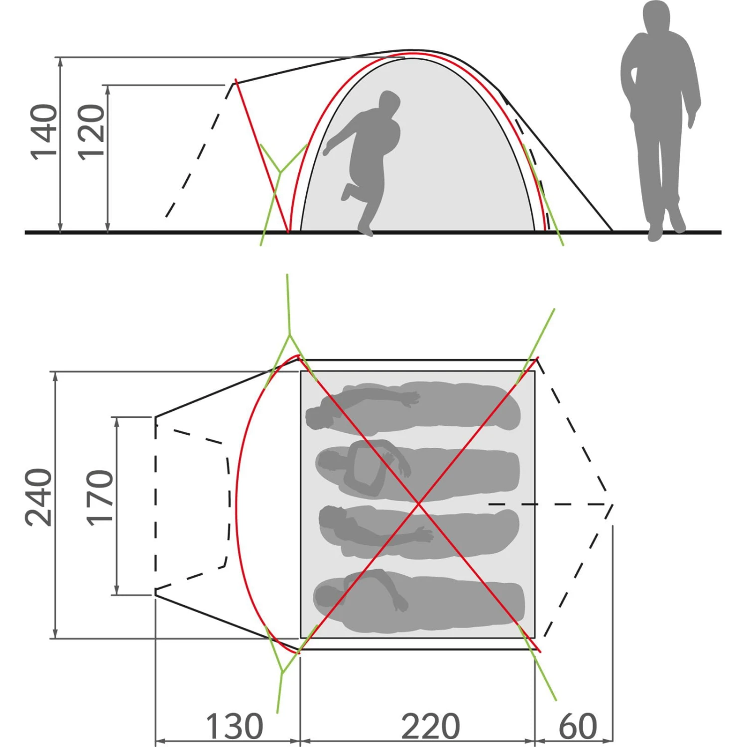 | Maße Außenzelt ca. | 410 x 250 x 145 cm |
