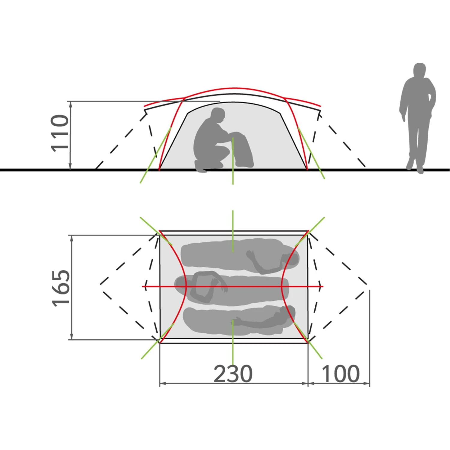 | Eingänge Innenzelt | zwei |