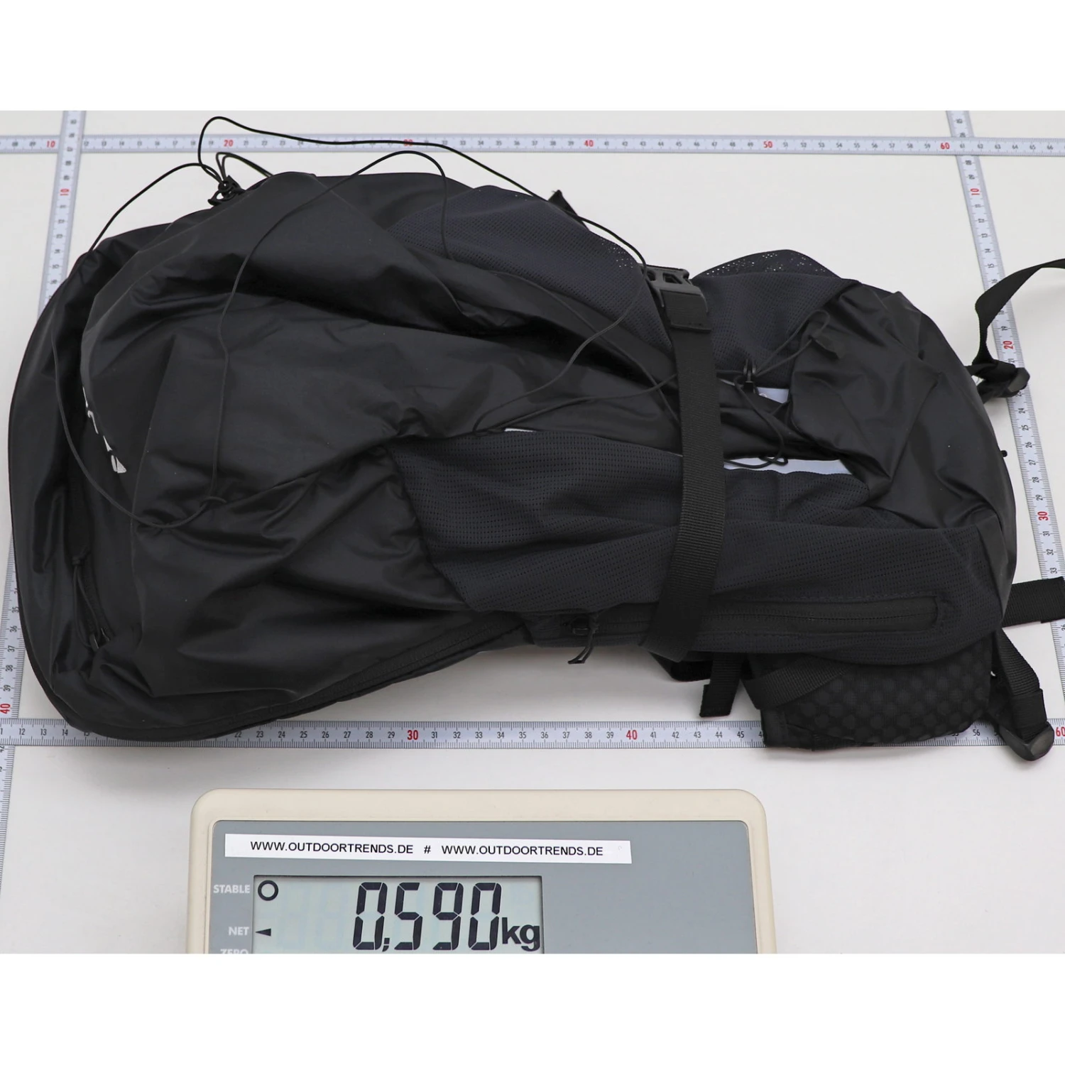 | Material | Zusatzmaterial: 100% Polyester (recycelt, 600D Polyurethan beschichtet), Regenhülle: 100% Polyamid (190T, Polyurethan beschichtet), Hauptmaterial: 100% Polyamid (70D, silikonisiert und Polyurethan beschichtet), 100% Polyester (recycelt, 150D, Polyurethan beschichtet) |