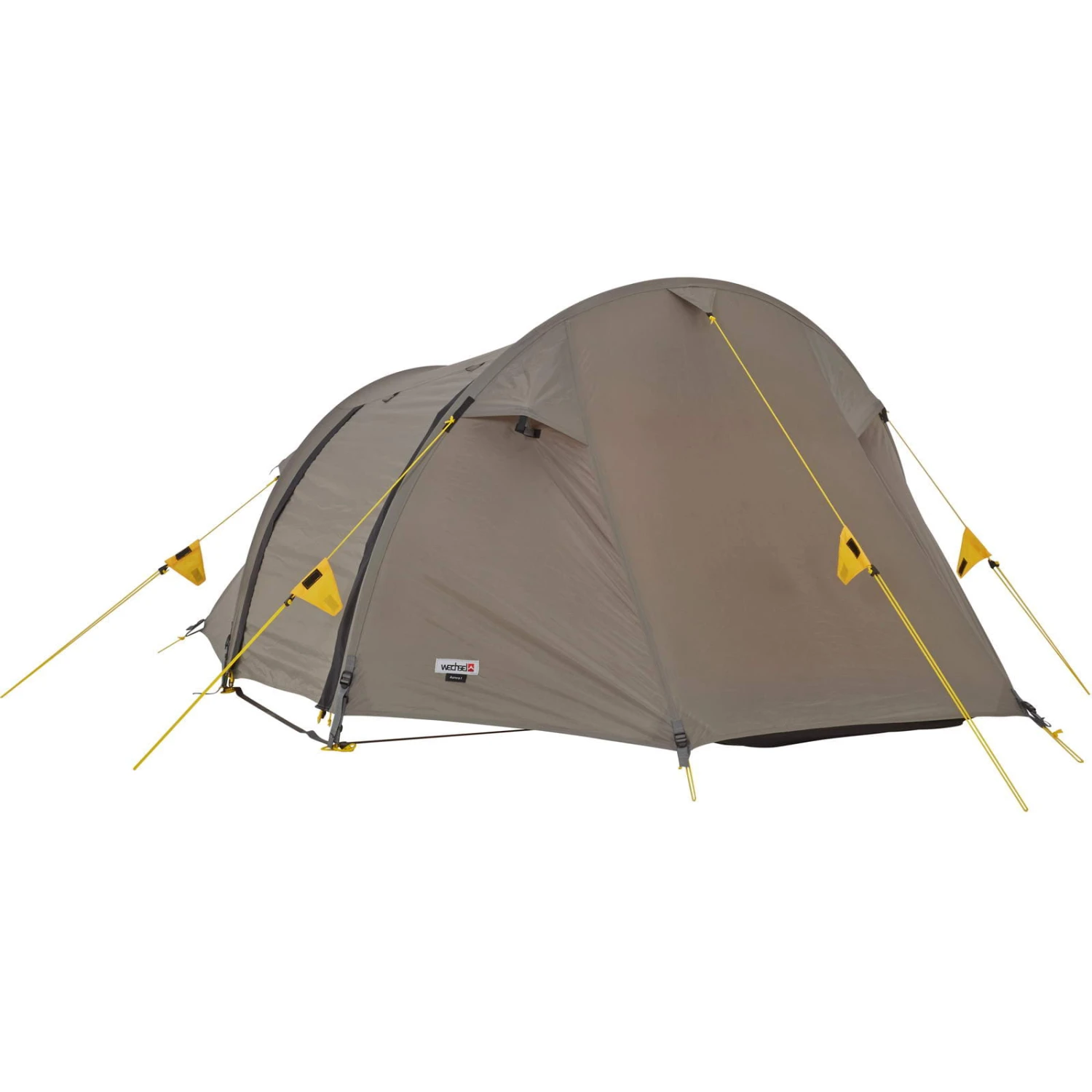 Das Aurora 1 aus der Travel Line von Wechsel Tents ist ein sehr komfortables aber dennoch leichtes ein Personen Zelt mit außenliegendem Gestänge. D.h. das Zelt kann mit eingehangenem Innenzelt in einem Rutsch aufgebaut werden. Die durchlaufenden Gestängekanäle erleichtern den Aufbau. Das Zelt ist zur Fußseite etwas flacher gehalten um Gewicht zu sparen und die Aerodynamik zu verbessern. Das Aurora 1 hat relativ kleine Flächen und ist somit sehr Windstabil und auch für gemäßigten Wintereinsatz tauglich. Das Außenzelt verfügt über vier verschließbare Apex-Ventilationsklappen. Die Außenzelttür kann im geöffneten Zustand mit zusätzlichen Stangen aufgestellt werden und bietet somit einen hervorragenden Regenschutz. Das Innenzelt bietet eine komfortable Sitzhöhe von 93cm und genügend Platz an der Seite für einiges an Gepäck. Ferner verfügt das Innenzelt über zwei abdeckbare Lüftungsöffnungen sowie eine Tasche zum Verstauen der Kleinigkeiten. Die obere Hälfte der D-Formigen Innenzelttür besteht aus nicht abdeckbaren Mosquitogazen.