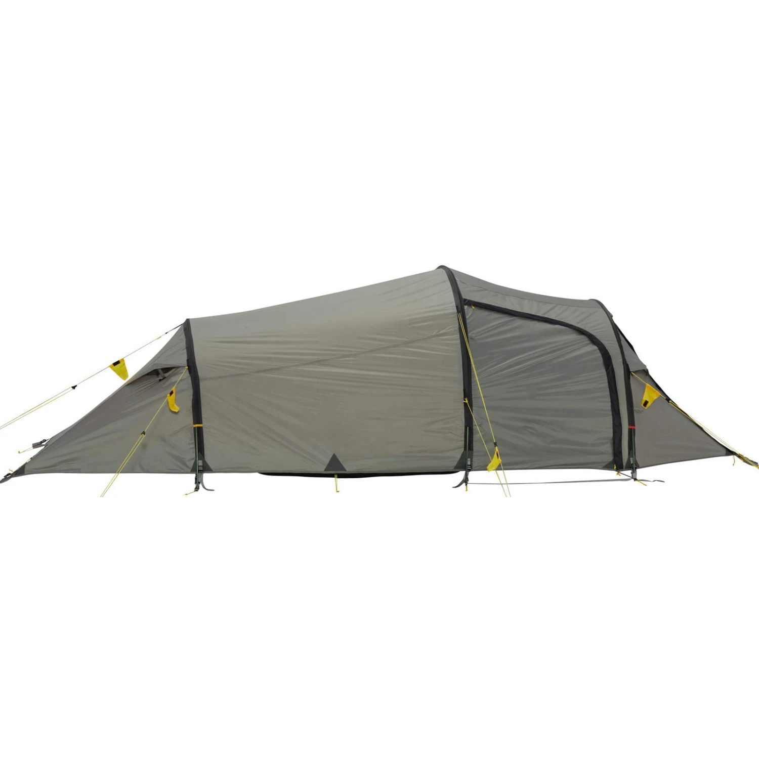 In seiner Art unverwechselbar: Eines der erfolgreichsten Modelle von Wechsel Tents: das Outpost 2 ist seit Beginn an im Zelt Programm von Wechsel. Sehr geräumig für 2 Personen. Der einzigartige Innenzeltschnitt bietet auch einer sehr großen Person einen komfortablen Schlafplatz. Es bietet die Vorteile einer asymmetrischen Tunnelzeltform wie z.B. relativ geringes Gewicht und hohe Sturmstabilität bei großer Apsis und geräumigem Innenzelt. Es hat einen regengeschützten, abdeckbaren Moskitogaze-Innenzelteingang in D-Form und eine große Apsis mit zwei Eingängen. Die großflächige Dachlüftung der Apsis, die sich vom vorderen bis zum mittleren Gestängebogen erstreckt, verbessert deutlich die Belüftung. Um die Abdeckung dieser Fläche zu realisieren, wurde das Zelt mit effizient zu handhabenden außen liegenden Gestängekanälen versehen. Das Innenzelt bietet viel Platz für zwei Personen und ist mit einer rückwärtigen Ventilation und vielen Taschen versehen. Der seitliche Eingang und ein vorderer Eingang machen das Handling mit Gepäck einfach. Bei aufgerolltem vorderen Eingang bietet sich ein hervorragender Panoramablick aus dem Zelt. Im Vergleich zum Modell bis 2018 verzichtet Wechsel Tents auf die Dachlüftung im Apsisbereich.