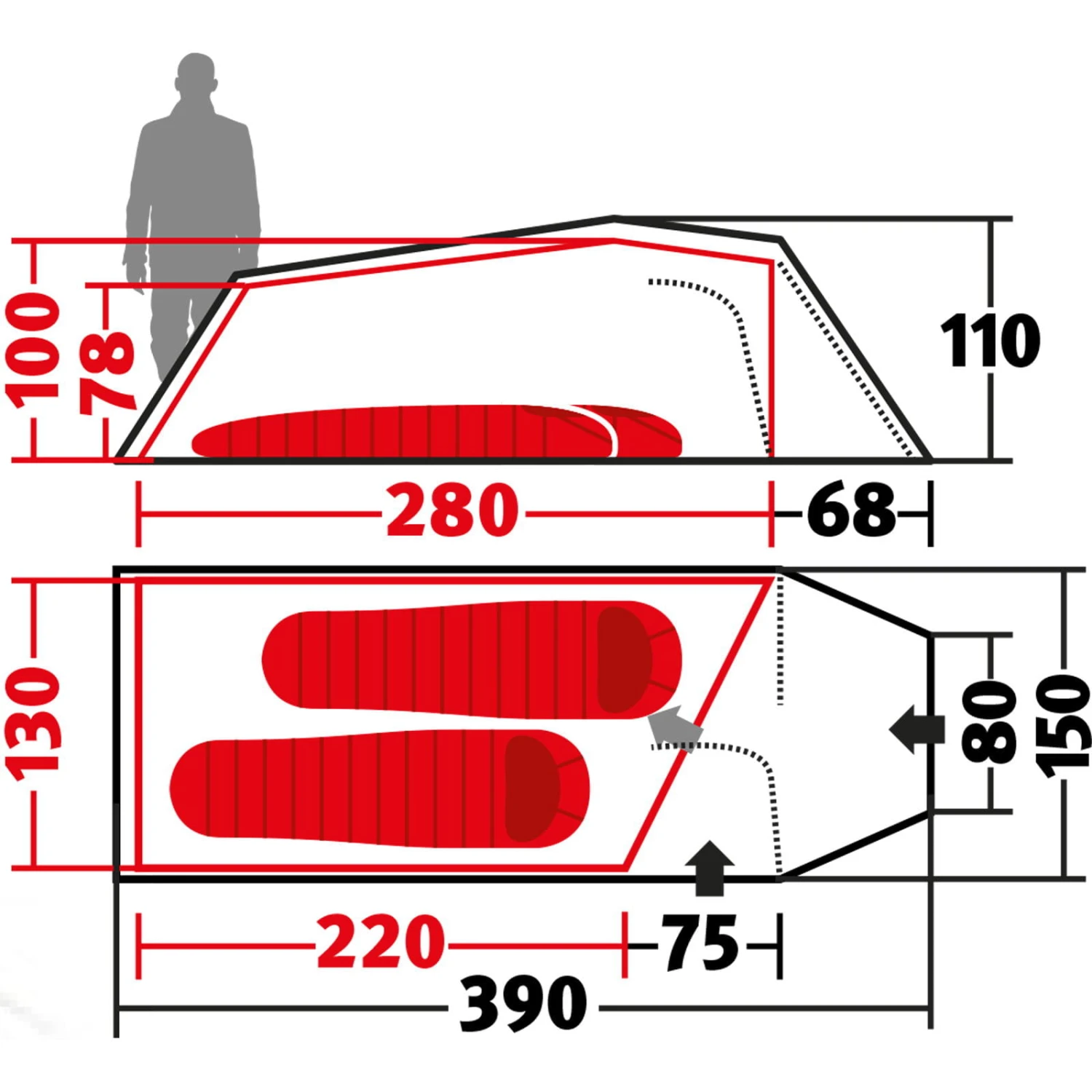 | Eingänge Außenzelt | zwei |